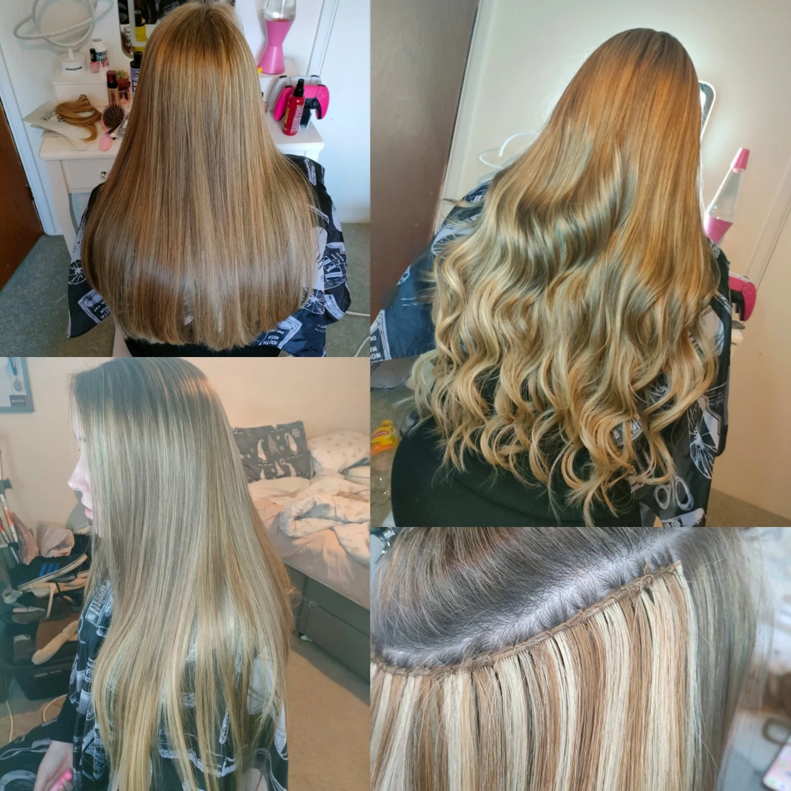 I offer many different hair extensions methods, I am fully trained through Maxwell Melia Academy, back in 2021. I am trained in nano and micro rings, invisible weave, LA weave, tapes and the newest method that is very exclusive called the nano weave method. My supplier for the hair itself is called Prestige, I get a trade discount and I do offer that to my clients when ordering the hair for them. Please book in a complimentary consultation to colour match your hair and quote you a price (for the hair). As there are many variables, it prevents me from giving a price without seeing you. Hair extensions don’t have to be just for added length, they can also be used for creating thickness (whether that is all over or just on the sides) or to add some colour in it is completely up to you. I use silicone lined rings on all beaded and weft methods to prevent slippage and promote the health of your hair.